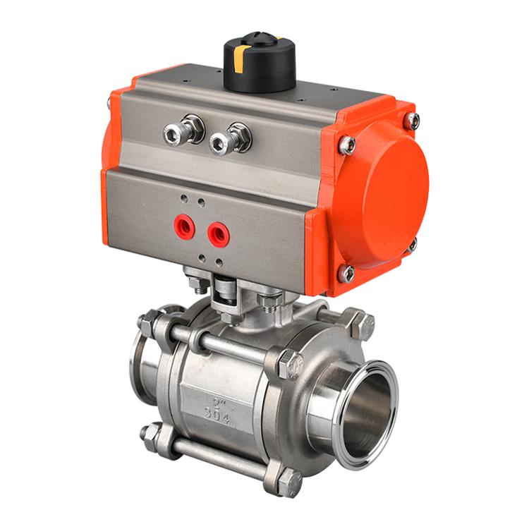 氣動三片式快裝球閥齒輪式雙活塞,輸出扭矩大,重量輕,外形美觀,上下可安裝手動操作機構(gòu)。機架式連接可調(diào)節(jié)開啟角度和額定流量。執(zhí)行機構(gòu)可選擇實時信號反饋指示和各種附件實現(xiàn)自動操作。兩端可調(diào)螺釘可使標(biāo)準(zhǔn)品在0度和90度可調(diào)范圍內(nèi),保證與閥門同步精度。